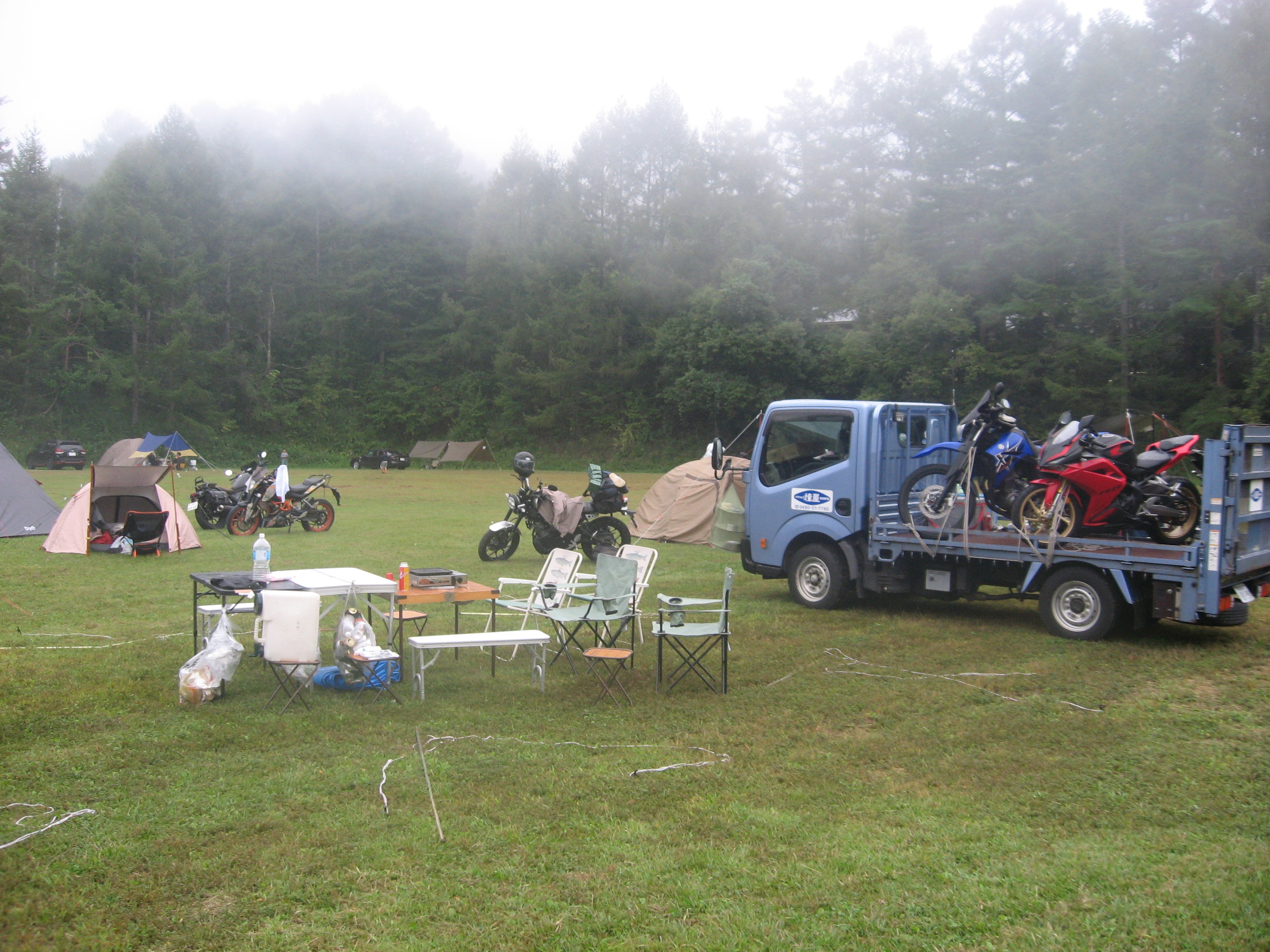 ↑は初日の夜に風が強くなりタープは撤収し、青空の下のテーブルです