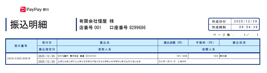 今年1年のツーリングを通じて、ご参加の皆さまからお預りしたワンコインツーリング分と合わせた総額に当店からの¥20,000を足して¥101,500となりました